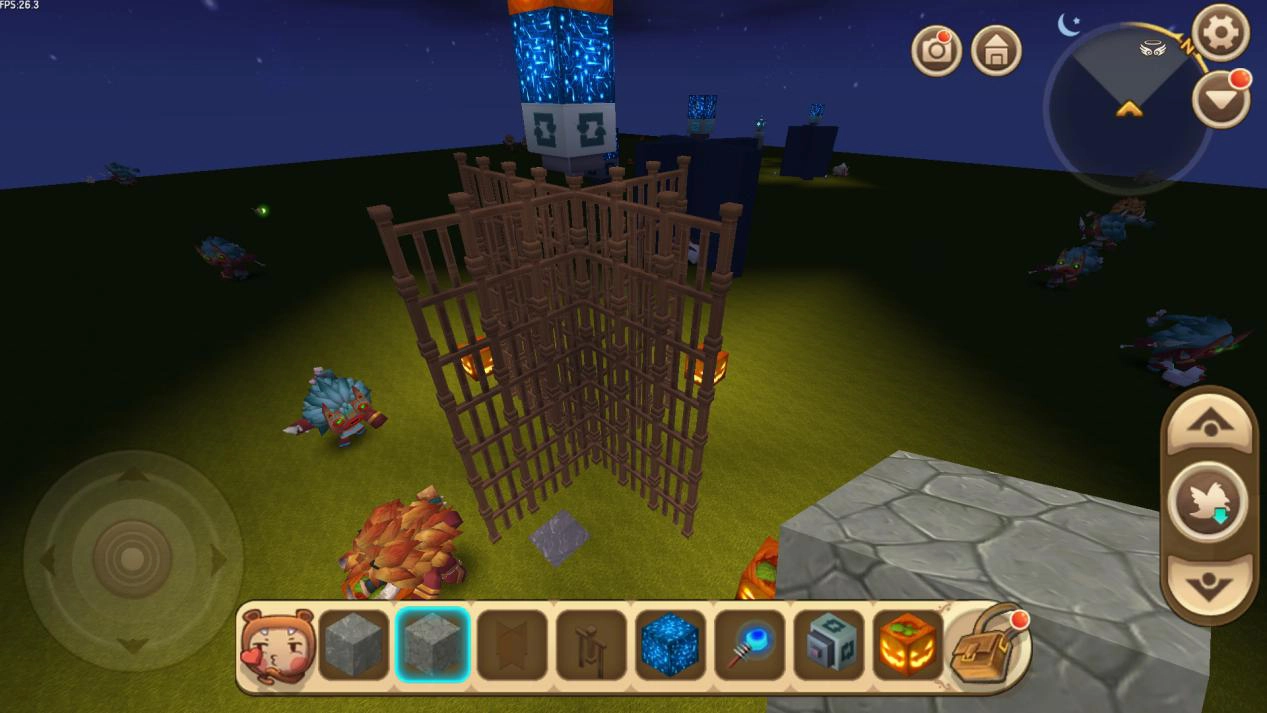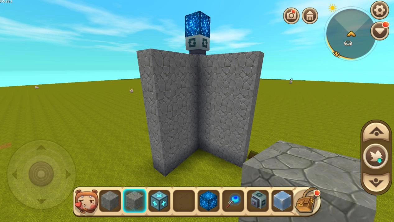 首先,玩家得先找一片空地,接着着手制作旋转中枢。能用来做旋转中枢的材料不少,我建议大家最好选石制材料,这样操作起来会更方便。玩家需要先按照图里的样子,把石块竖着搭建起来,它的高度没有固定要求,但我建议高度别超过十个方块。