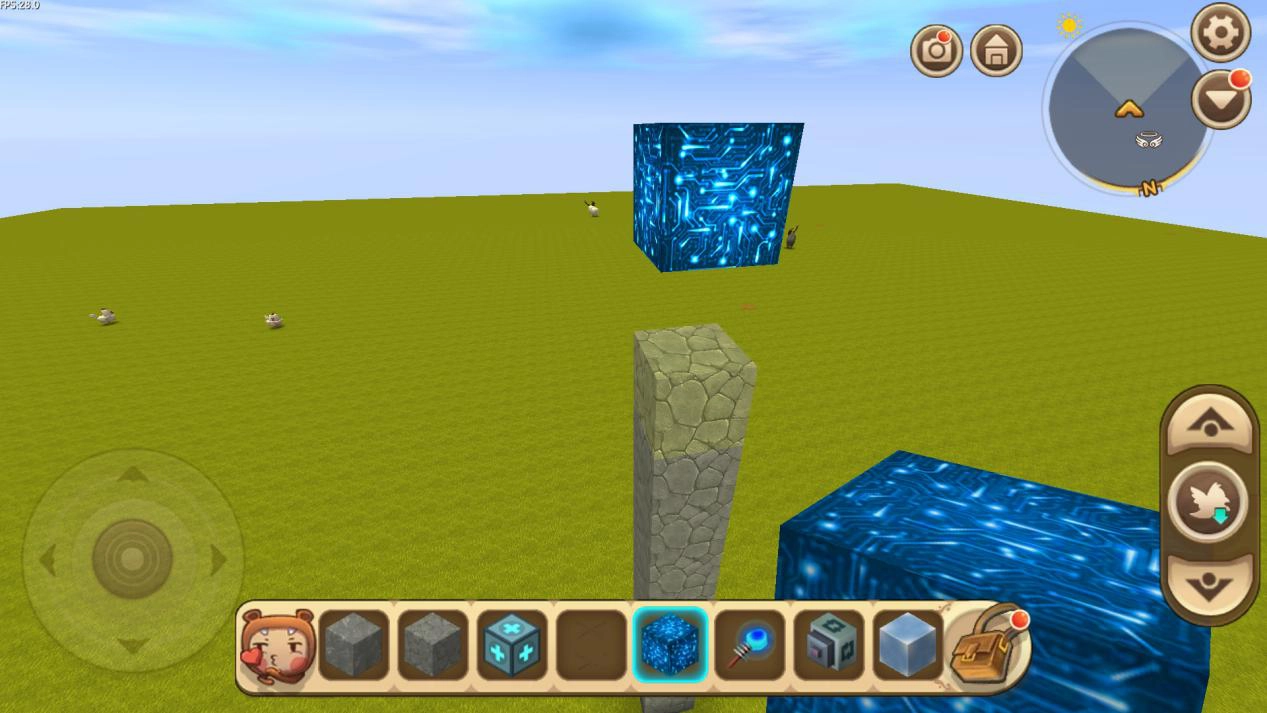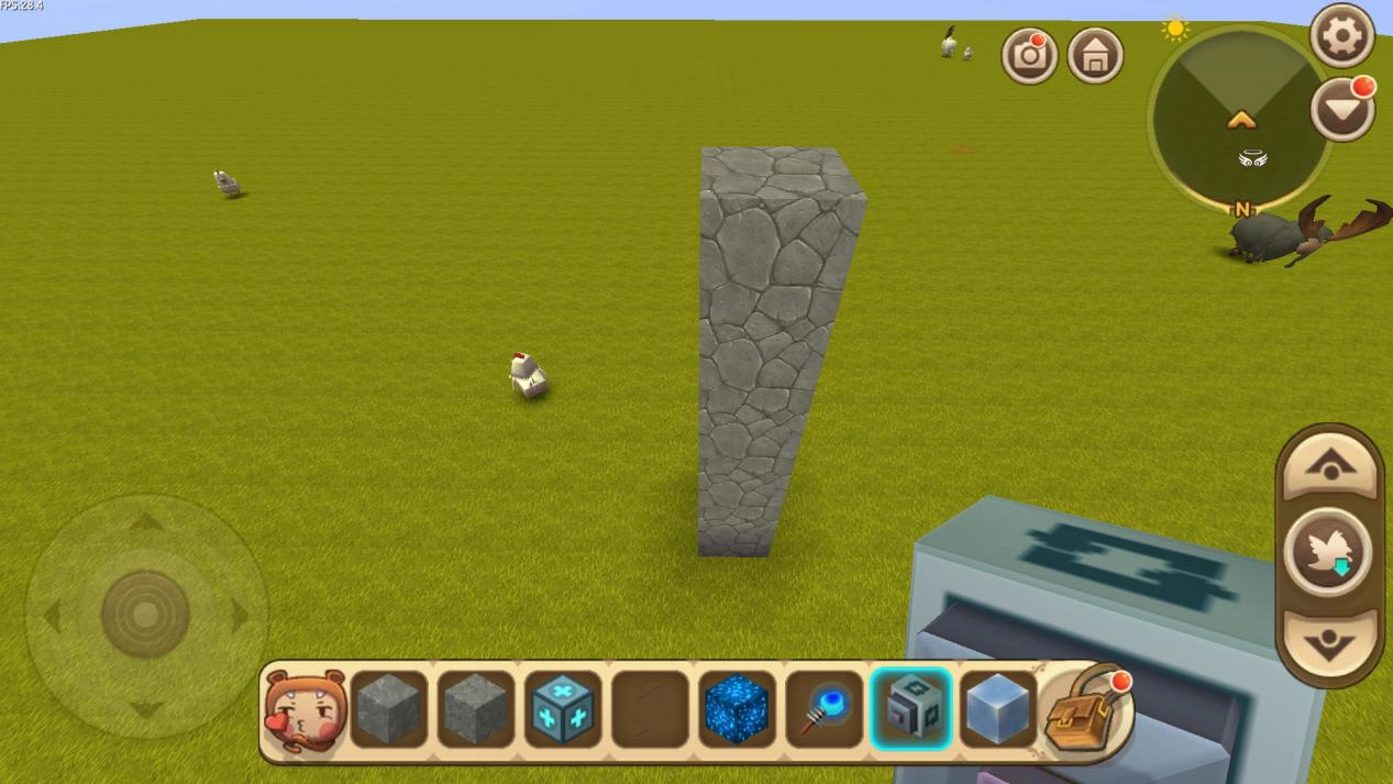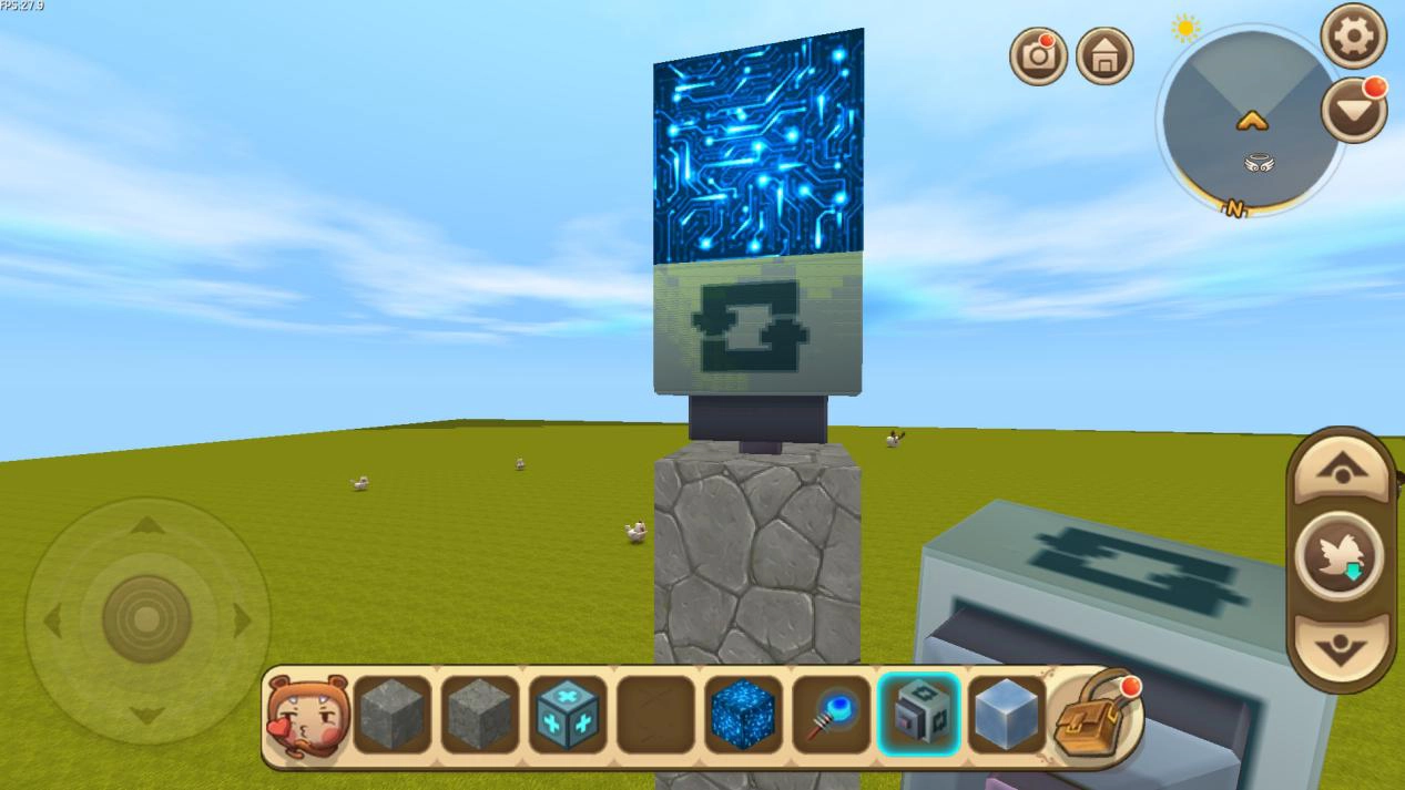石柱搭建完成后,玩家需先安装电能块,接着击碎电能块下方的石块,最后安装旋转按钮。这里有个注意事项:安装旋转按钮时务必留意方向,带有转头的一侧必须朝向石柱(即向下),如此才能实现旋转功能。