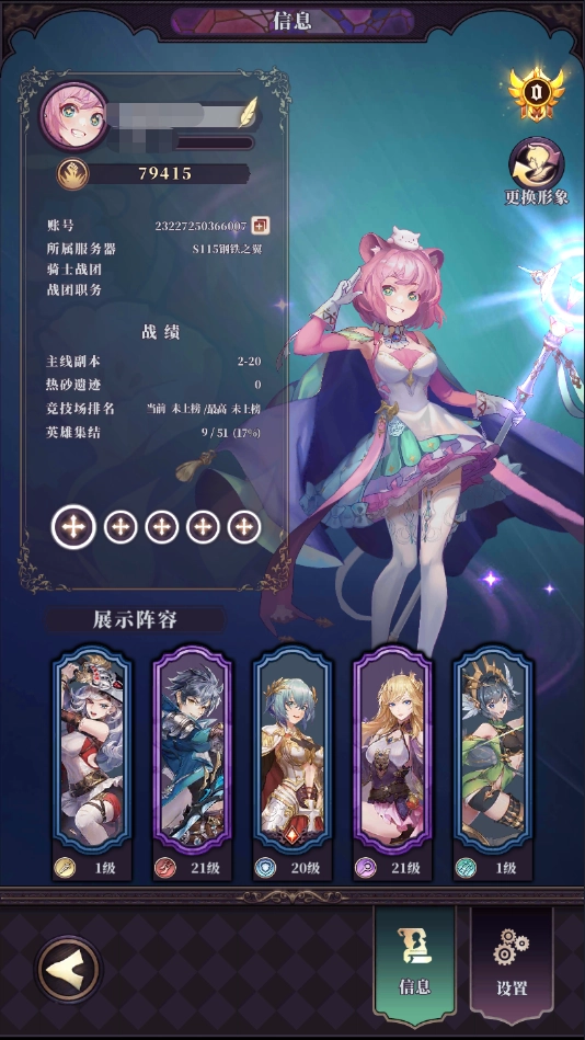 1、先进入游戏主页面,点击左上角的角色头像,接着点击右下角的“设置”功能。