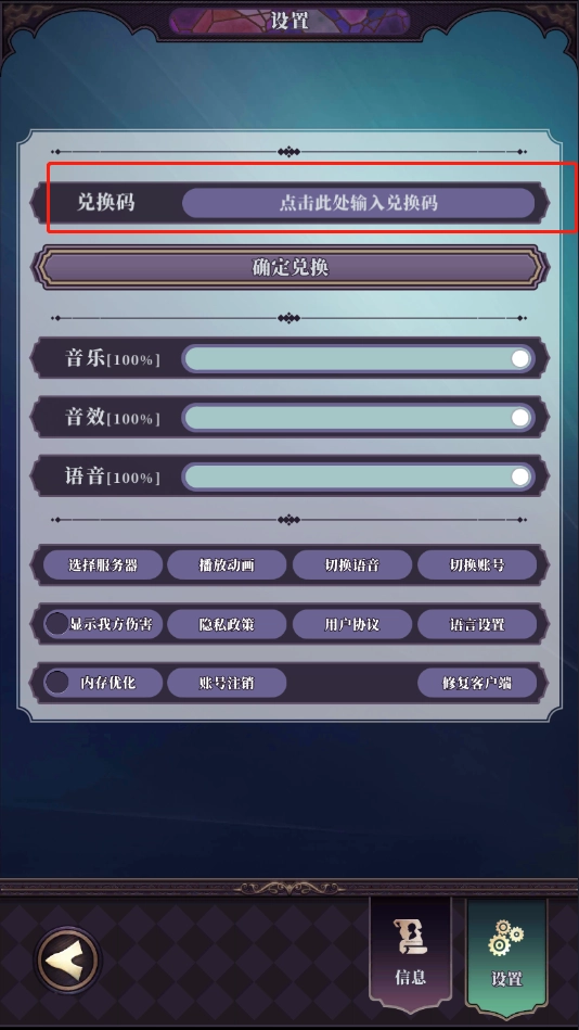 2、在设置中的兑换码一览输出兑换码后点击“确定兑换”即可进行兑换。