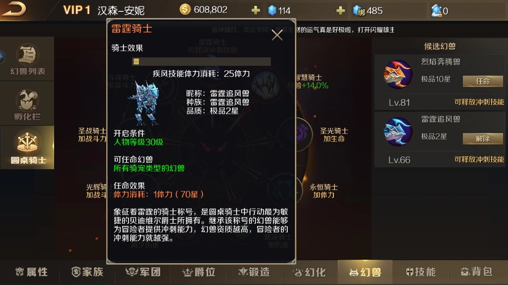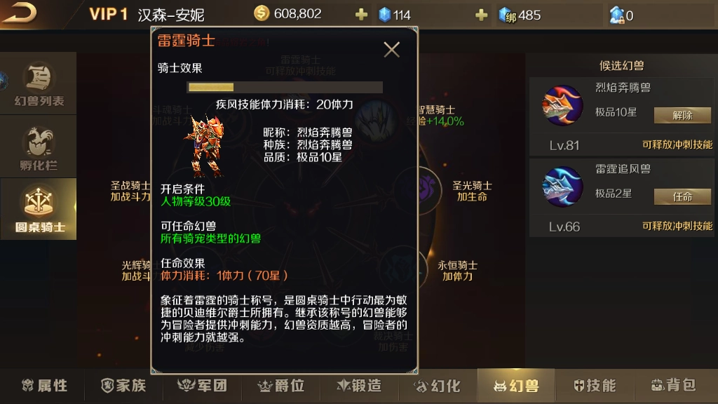 再次点击雷霆骑士的槽位,就能看到详细说明。这个槽位的开启条件有两个:一是等级达到30级,这相对容易达成;二是需要任命可骑乘的幻兽。