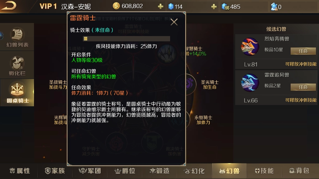 首先我们点击雷霆骑士的槽位,接着在右侧能看到可任命的幻兽,点击任命就行。但要留意,并非所有幻兽都能被任命为雷霆骑士,这需要满足一定的条件。