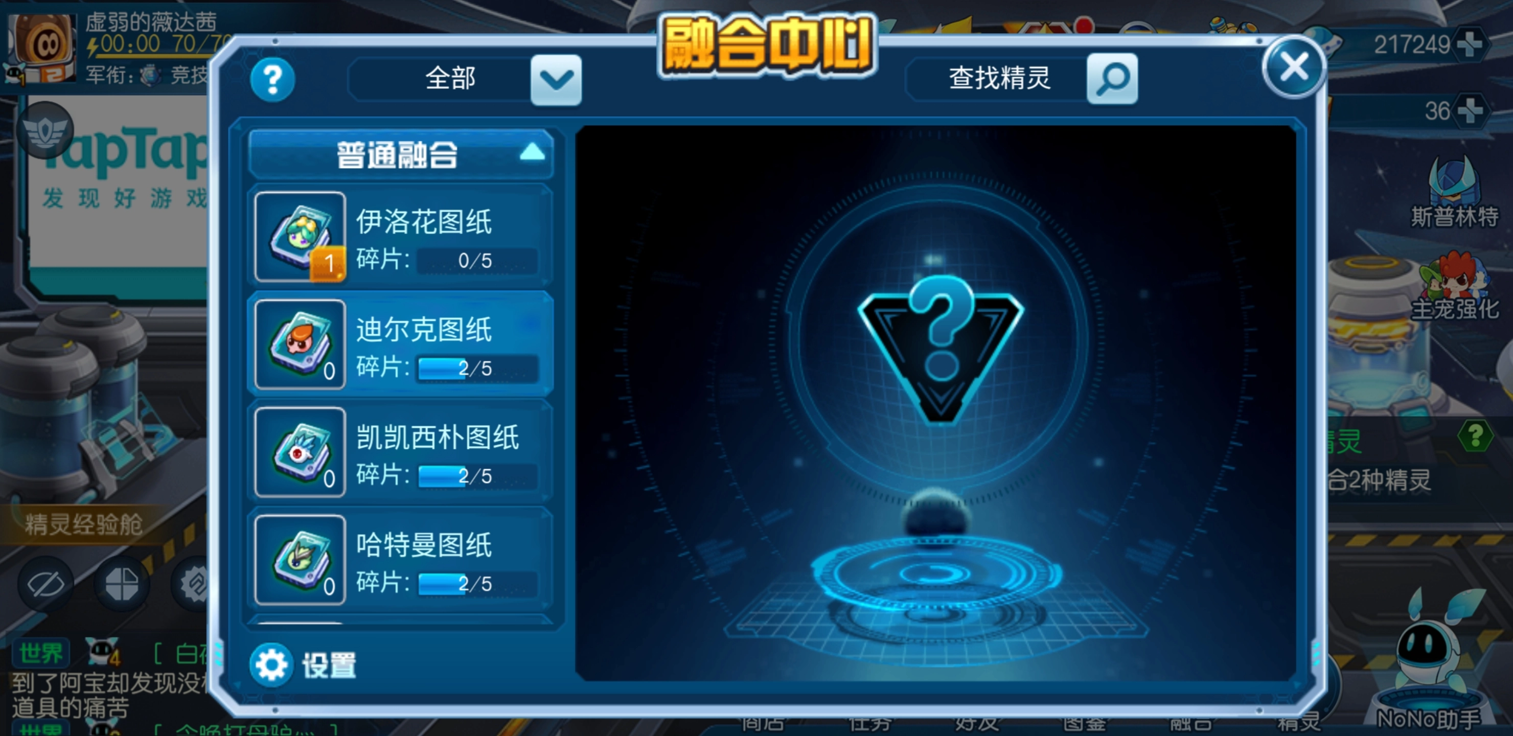 在融合中心里,玩家能够开展不同级别的融合操作,把两只精灵的能量相融合,就能得到一只全新的强力精灵。其中最基础的就是普通融合,玩家可以通过挑战各个星球的精英模式来获取特定的图纸碎片,再将这些碎片合成图纸。合成图纸所需的碎片数量不等,最少需要五个,最多则要三十个。