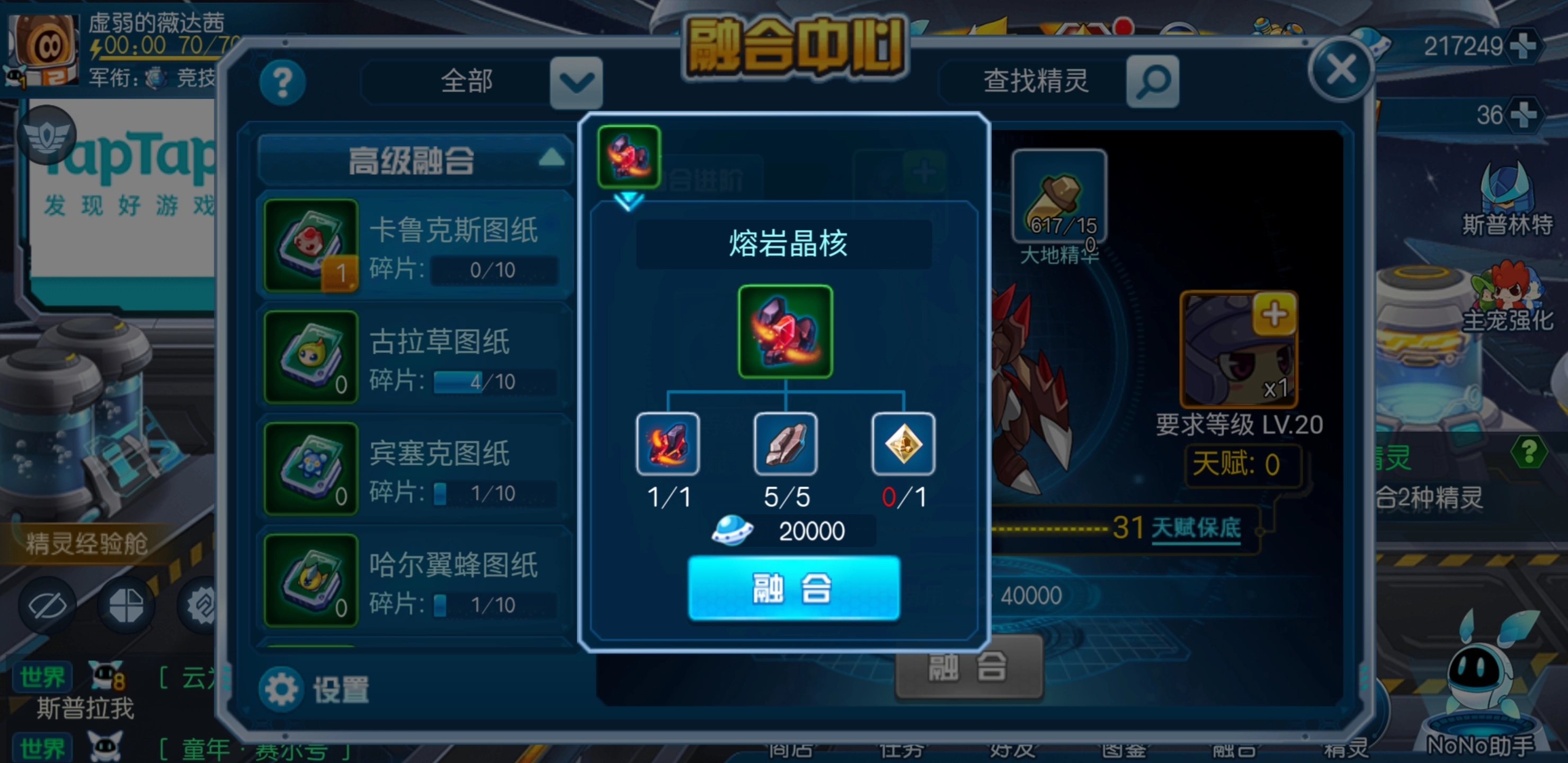 神兽级别的融合玩家仅能通过特定副本获取图纸,融合道具的一部分可从副本中得到,但另一部分则需通过极限挑战、迷航商店和能量补给站获取,这些道具获取难度极高,玩家首先得具备极强的精灵实力才行。