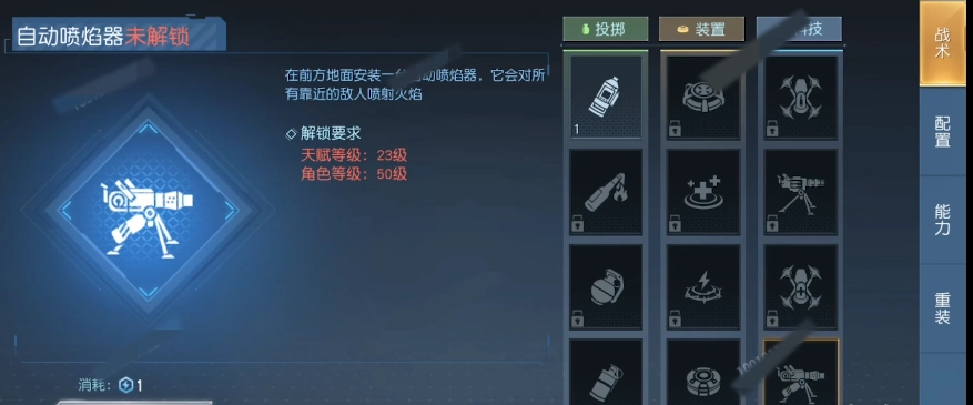 第二个炮台技能名为自动喷焰器,与自动炮台相比,它发射的是火焰,尽管射程较短,却能造成范围伤害并持续灼烧敌人。依据地形差异合理选用自动喷焰器或自动炮台,会是速通副本的关键所在。