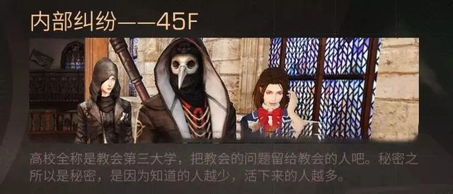 在和学生的交流中我们了解到,学校顶层的教授们掌握着化解这所大学危机乃至拯救全人类的办法。与此同时,卡洛琳的竭力阻止以及高阶教徒的警示,也在隐隐透露着顶层世界潜藏着令人恐惧的危险。