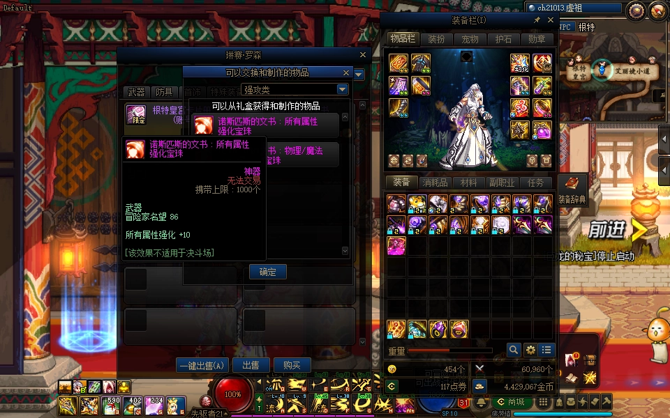 在这里大家可以用诺斯匹斯的文书直接购买,这里面包含武器、上衣和下装的宝珠。输出职业可以直接选10点属强或者45点三攻,效果挺不错的,比较适合大家过渡使用。