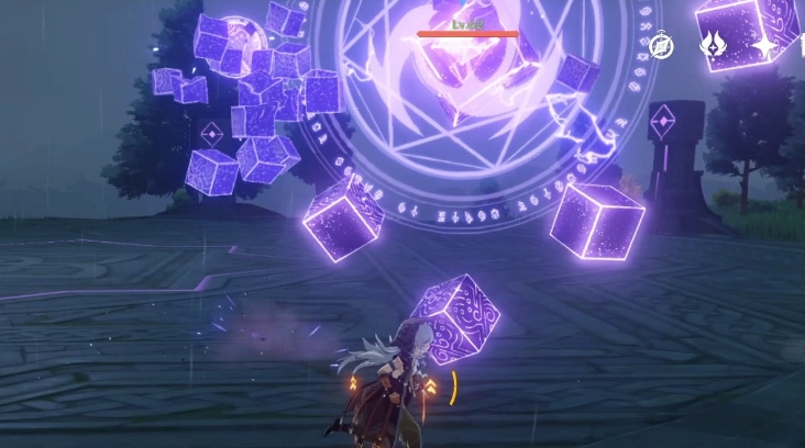 当【无相之雷】释放这个技能时,组成护盾的柱子是逐条掉落的,所以我们完全可以操控角色持续保持快速移动,或者干脆召唤队友当“肉盾”,这样就能在护盾形成之前躲开雷击区域,直接攻击【无相之雷】脆弱的本体。