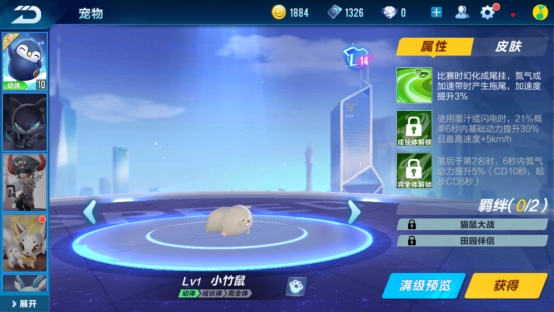 第一个点券宠物小竹鼠,小编一瞧见就忍不住想戳戳它——那自带萌感的小牙、圆滚滚的胖身子,还有那似撒娇又似讨要竹子的软乎乎叫声,都是它让人一眼就喜欢上的外观亮点。再加上它在比赛时能提供加速效果,带小竹鼠上场绝对不亏!更重要的是,这只小家伙还能在比赛的关键时刻,为玩家争取到扭转局势的宝贵时间呢!