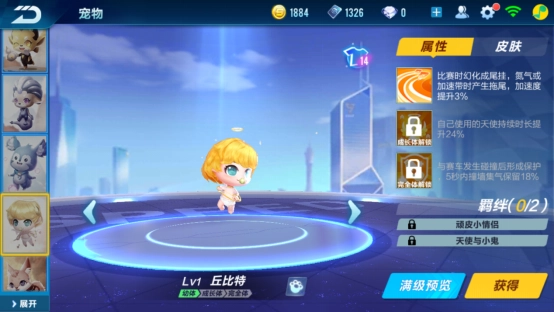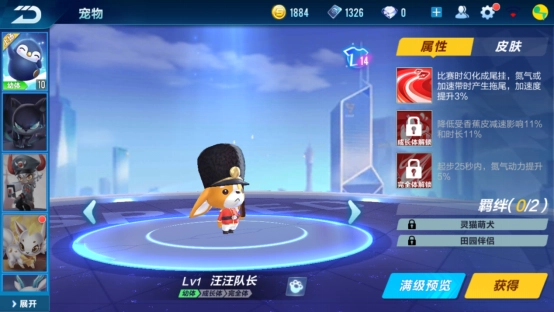 第二点要介绍的是汪汪队长,光听名字就知道和人类的好朋友狗狗有关。这是一只戴着高帽子、训练有素又十分认真的小狗,尤其是幼年期的模样最讨人喜欢,带着点委屈巴巴的小表情和软乎乎的叫声,小编觉得这样的宠物肯定能抓住玩家的心。而且完全体的汪汪队长能给氮气动力加buff,成长阶段还能减少道具里香蕉带来的负面影响。虽说这只小队长的外形不算特别出众,但光是这些实用又贴心的设定,就足够让人对它心软啦。