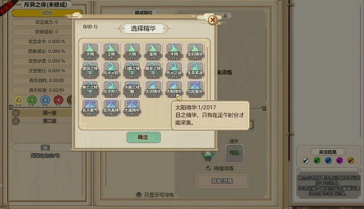 其他角色其实都能靠服用丹药来加快灵气增长,体修不用提升灵气,自然用不上丹药;不过要是想借助道具升级,就得先把丹药淬炼一番——对应的丹药淬炼后会化作精华,每次炼体时加入这些精华就能缩短炼体时间,而且多数精华还带有额外效果,所以使用精华时避开属性相互克制的就行。