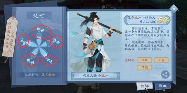 不同的选择会导向各异的结局,同时还能改变自身的处世立场,系统会根据选择方向给出精准的性情判断。要是正派指数足够高,大家都能活成令狐冲那般;可若盘算指数更高,恐怕就会变成岳不群那样了。