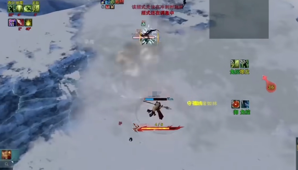 突:这个技能在马上无法施展,携带对应的秘籍后最远攻击距离可达27尺。命中目标时会造成眩晕效果(持续1秒),同时自身获得免控状态,还会附加小伤害和击倒效果。由于击倒会使目标位置产生位移,导致双方距离拉开,所以该技能通常用于近身缠斗和控制目标。实战中,玩家一般会在使用前尽量拉开与目标的初始距离,以此延长后续的控制时长。
