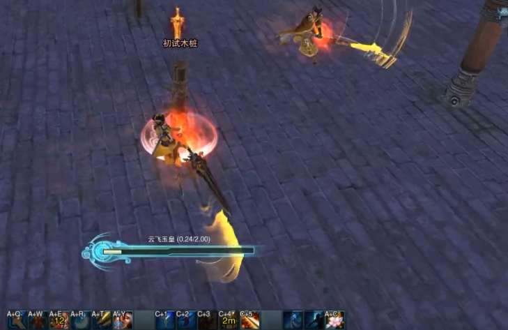 玉虹贯日:近身技能,但距离太近无法使展开招式,打断并冲刺到敌方身前,一般用于轻剑远距。
