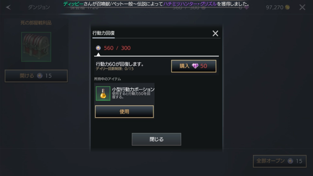 (3)恢复药剂:恢复行动力还可以借助恢复药剂,小瓶的行动力恢复药剂能够恢复50点行动力。