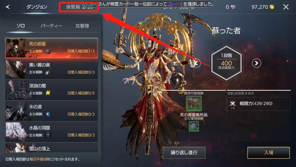 (4)注意事项:副本宝箱的最大储存量为二十个,所以建议大家不要持续刷取低等级宝箱,应尽量选择高等级宝箱进行挑战,避免宝箱过早达到储存上限。