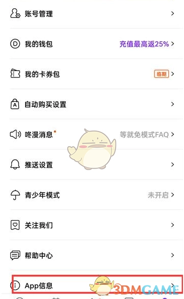2、接下来在MY页面里点击【APP信息】。