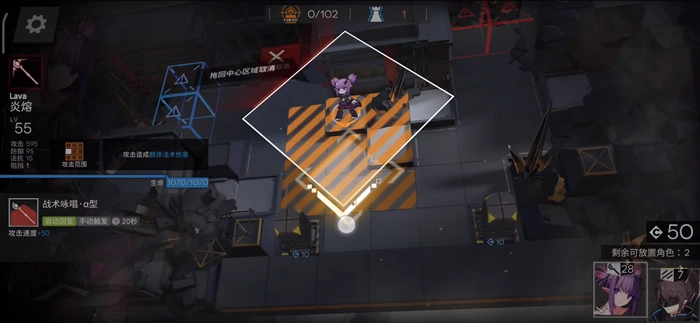 开始后,在中间高台部署炎熔,让她朝左边攻击,之后等待自动战斗就行。不过要注意,炎熔的攻击范围虽不错,能波及左侧门口的自爆蜘蛛将其直接蹭掉,但右侧门口的自爆蜘蛛不会被伤到,所以等它走过来时,得用夜刀空降卡住这个位置,和它一换一。另外,前期以及第82波之前,也都需要让夜刀空降完成一换一的操作。
