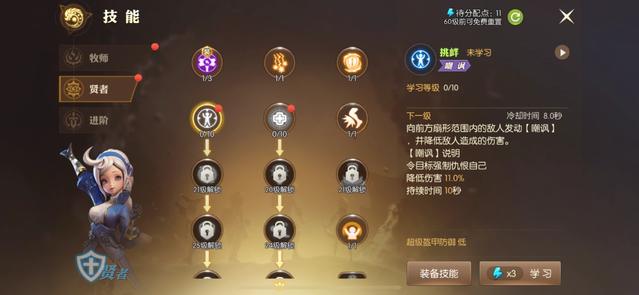 首先要明确,在《龙之谷2》里牧师这个角色的定位更偏向辅助与控制,和其他角色能打出爆炸输出的特点不同。当牧师完成转职后,玩家可以从贤者和祭祀这两个方向中选择,这两者的差异在于贤者偏向坦克定位,祭祀则是奶爸定位,接下来就分别介绍这两个转职方向的加点方法。