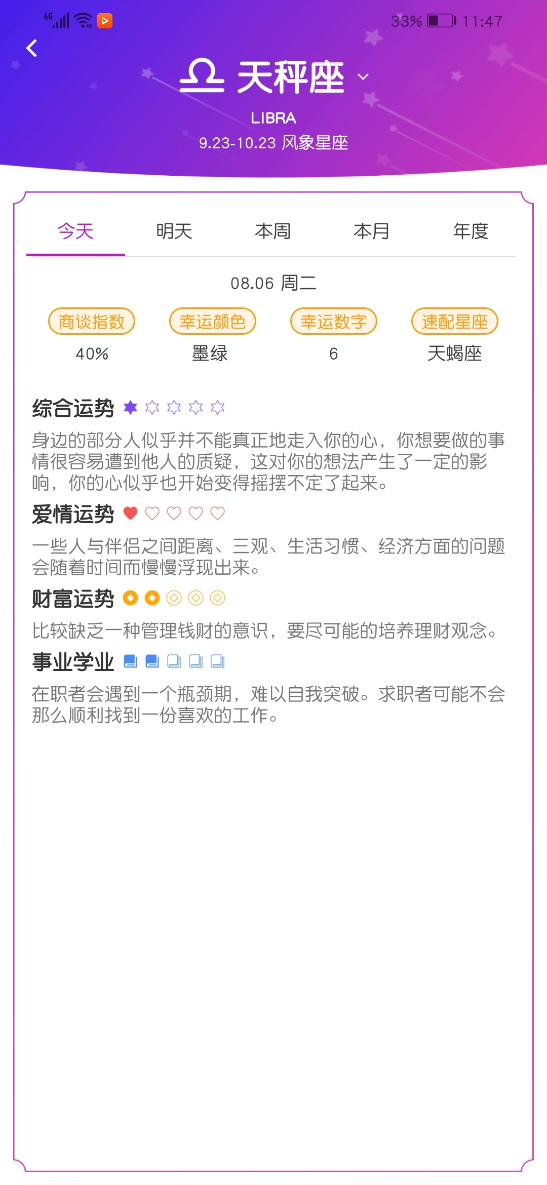 喜欢星座的姐妹们也能在这里找到感兴趣的内容,在首页点击今日星座选项,再选择自己的星座就能查看今日运势啦!