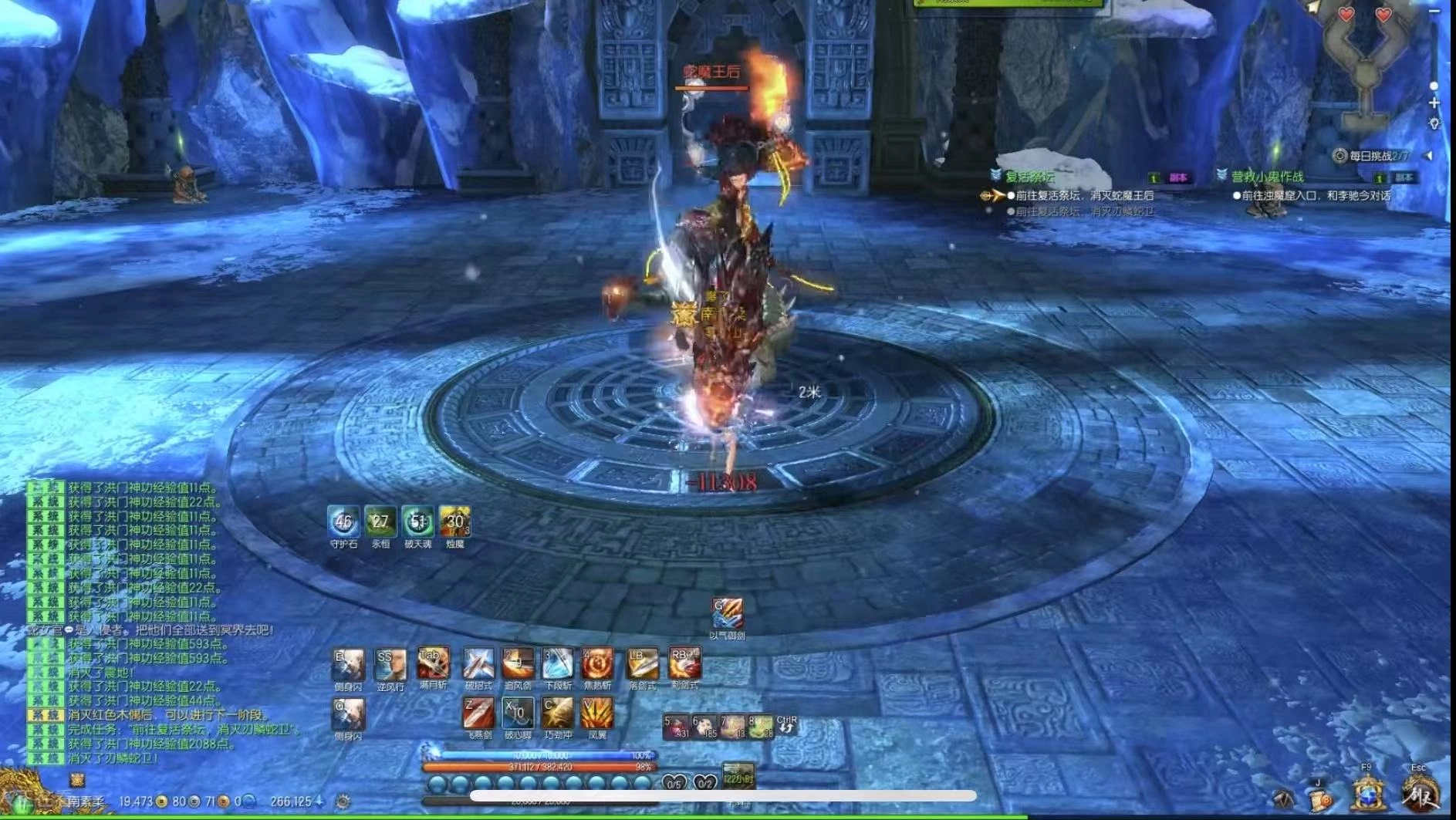 秦义绝是悬浮祭坛的最终BOSS,她有两种完全不同的形态,每种形态都有独特的攻击方式和技能组合。战斗中有多个特殊阶段,非常考验玩家的团队协作能力和随机应变能力。当出现“墨灵魔女秦义绝召唤出了墨灵魔女分身”的提示时,对角位置会很快出现两个分身。这些分身会主动去抓取第一仇恨目标,同时还会释放远程技能进行攻击。这时候,团队成员需要紧密配合,既可以把BOSS控制抓举到分身处,集中所有火力攻击,快速消灭分身;也可以先安排一部分队员去清除分身,然后再全力攻击BOSS的本体。