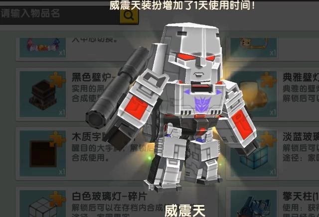 作为超有趣的3D沙盒游戏,迷你世界手游的热度相当高。毕竟在这个充满无限可能的方块世界里,玩家们能收获不少乐趣——像第一人称射击、MOBA这类玩法,在迷你世界里都能体验到,这正是它的独特魅力所在,确实很厉害!当然,官方也推出了不少酷炫的皮肤,比如威震天和擎天柱,这些皮肤同时也是载具,设计得相当用心。
