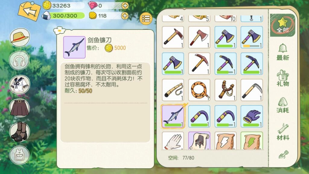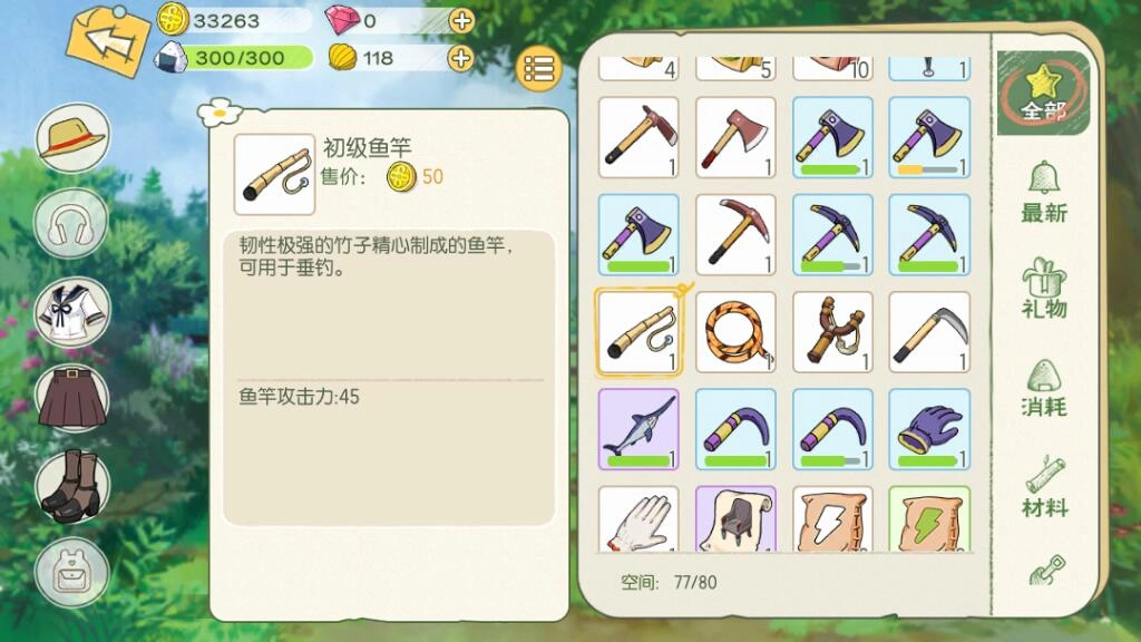 在开始垂钓前,我建议大家准备好高级垂钓道具。这能提高钓到金枪鱼的概率,概率提升后,玩家捕捉金枪鱼的效率也会达到最高。高级道具的设计图纸可以直接去村里的铁匠铺购买。
