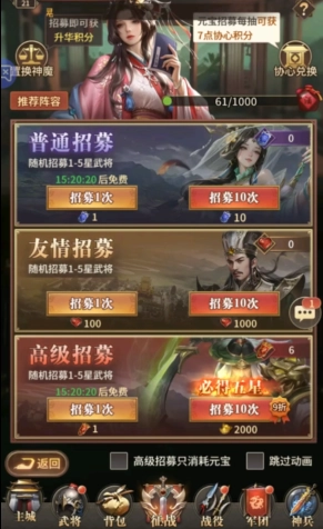 首先,对于那些急需强力武将的玩家,我要分享一个堪称雪中送炭的兑换码:WSZL66。使用后能获得两张高级单抽券、5个随机5星武将碎片,还有2万铜钱,这些资源在游戏前期都非常实用,推荐大家优先使用;而针对缺乏养成素材的小伙伴,建议使用兑换码WSZL99,里面包含88个寒铁矿、88个元宝和2张夺宝符,有了这些材料,足以帮各位顺利度过新手阶段。