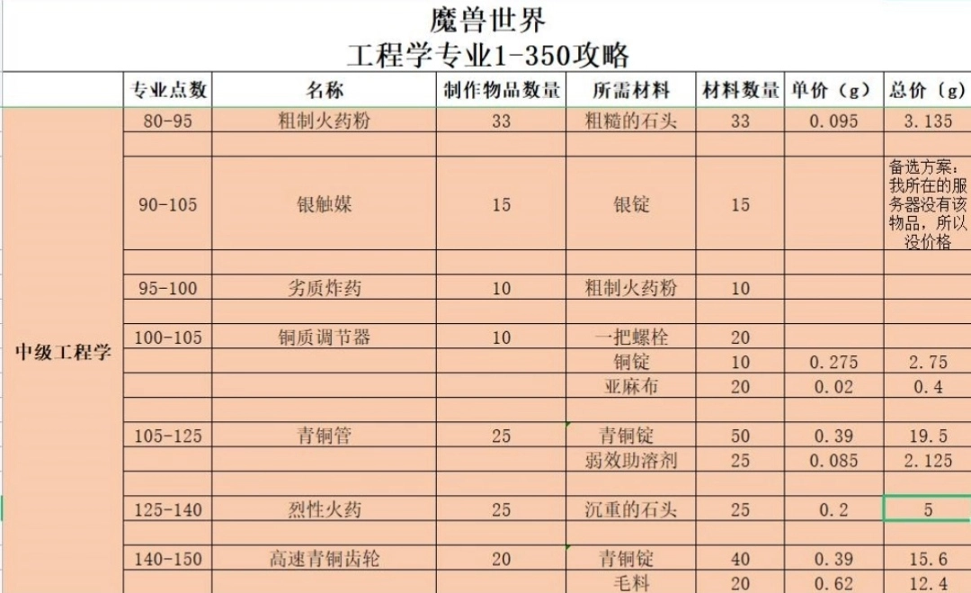 80~150级需要制作的是粗制火药粉,银媒触,劣质炸药,铜质调节器,青铜管,烈性火药,高速青铜齿轮。