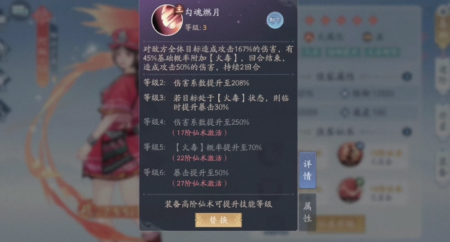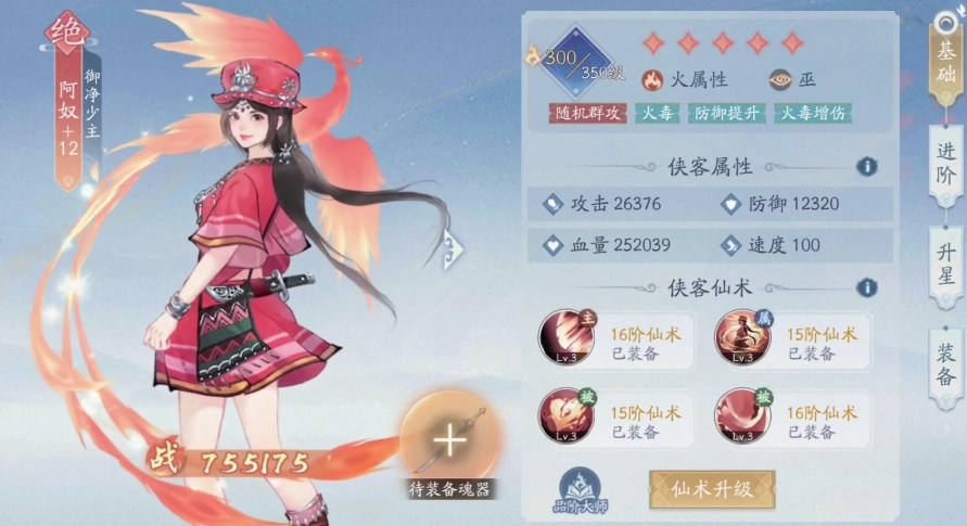 火属性阿奴的主动技能可作用于目标范围内的所有敌人,同时附带被动火毒攻击,且有一定概率随机重伤一名敌人。火毒是阿奴核心的伤害来源,既能有效为队友创造输出空间,还能持续给敌人施加负面效果buff——被火毒命中的目标会出现防御力与治疗量下降的情况。基于这一特性,小编建议小伙伴们在加点时优先提升火阿奴的减伤与速度属性,这样能更充分地发挥她的优势。