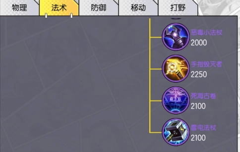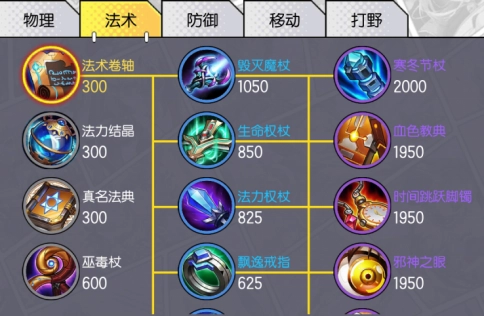这类装备是法师英雄的专属,通常用于为英雄提供法强加成、法术吸血、法术穿透、技能冷却缩减等属性。在该类别里,低级装备共有四件,而法术卷轴是法师英雄的专属出门装备。