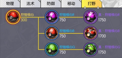 这类装备可划分为狩猎核心R、B、Q三种,且这三种装备均具备再次升级的空间。完成升级后,它们会转化为真·狩猎核心R、B、Q,每一款核心都拥有独特的增益效果。