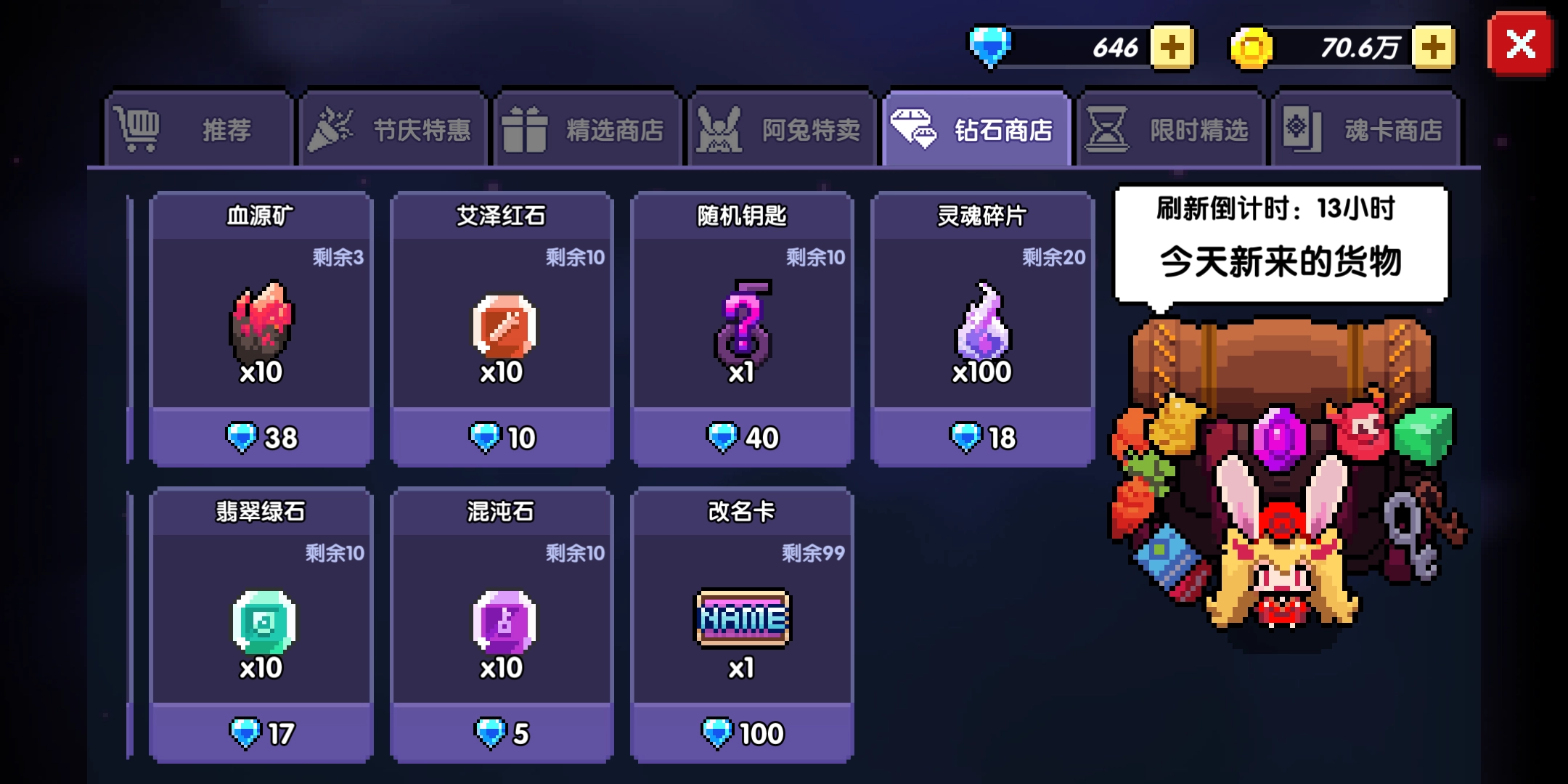 艾泽红石能够在阿兔的钻石商店里买到,价格为10钻石10个艾泽红石,每天最多购买10次。要留意的是,武器重铸的次数越多,耗费的艾泽红石就会越多,所以普通玩家重铸出一橙二紫的副属性条目就可以停止了。