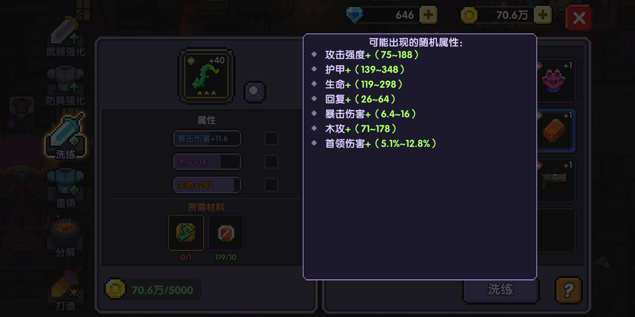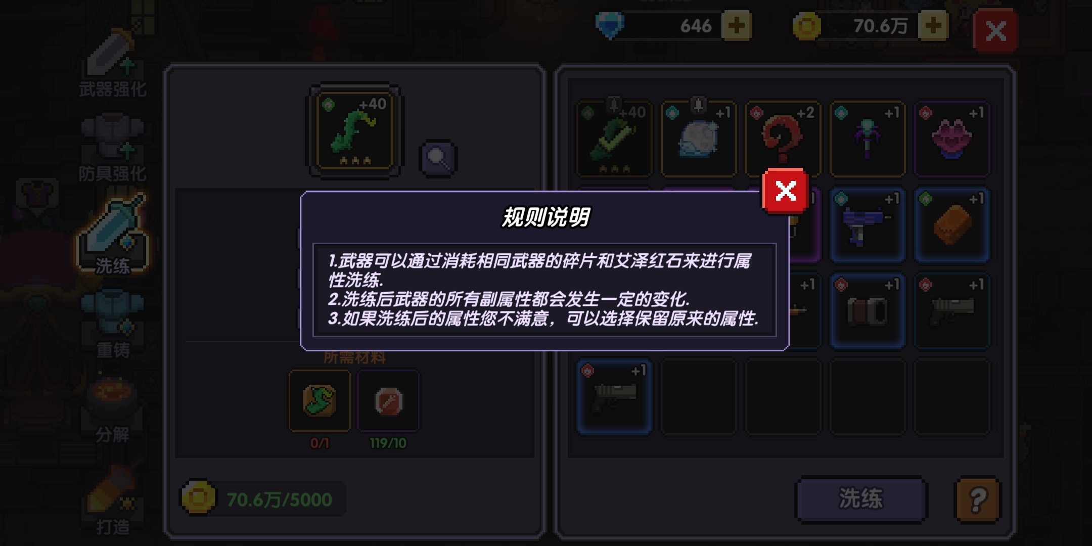 首先说明武器重铸的具体操作方式:进行武器重铸时,需耗费同名武器的碎片与艾泽红石来完成属性洗练;洗练之后,武器的全部副属性都会出现相应变化;要是对洗练后的属性效果不满意,玩家也能够选择保留武器原本的属性。