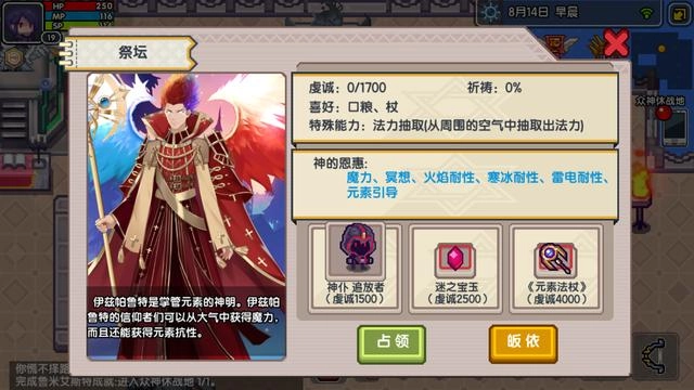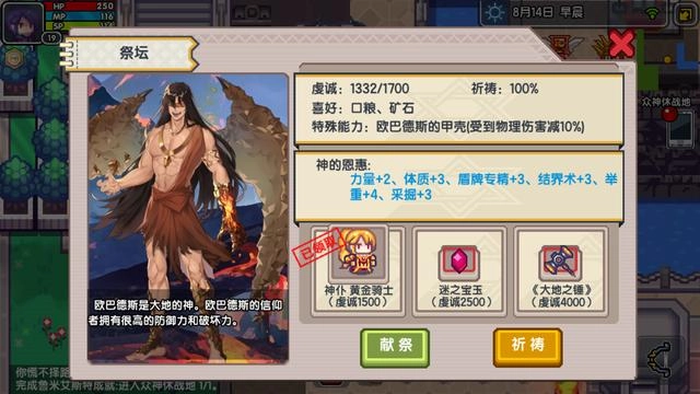 攻略:新手村、雪村挖矿,再去杂货店买铁矿石;约恩村、口岸、王城、雪村祭坛这几个地方要先占据,挖矿石后不用全部献祭,先占据的话能多拿100,众神之地暂时不要动。