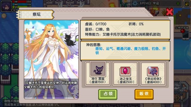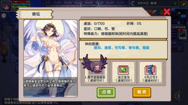 神仆:大妖精艾尔。可以让玩家的饱腹度变成实际时间损耗。