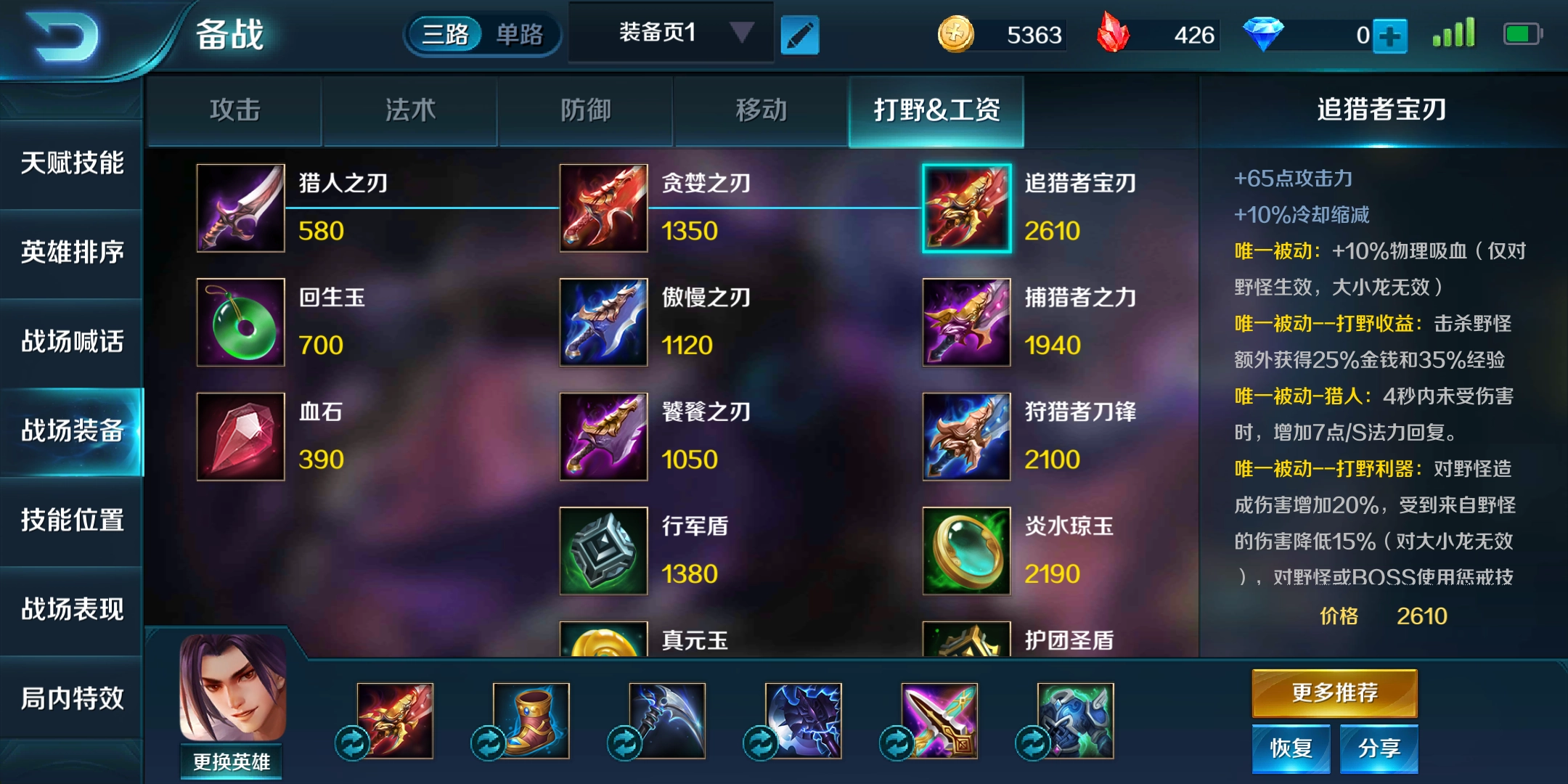 太史慈凭借出色的抓人能力始终位列打野T1梯队,前期出追猎者宝刃保障发育节奏,接着补上九转钩镰,能和一技能形成联动。后期则需选择提升技能伤害的追虹双剑,同时搭配肉装狂袭战凯,确保切入战场后不会被瞬间击杀。