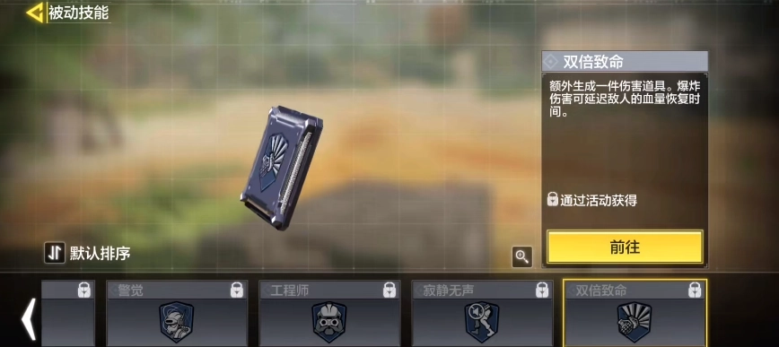 游戏里蓝色被动技能大多承担辅助功能,这里建议大家选用“双倍致命”这个被动——它能额外提供一个伤害道具,助力玩家输出更上一层楼,效果相当出色。