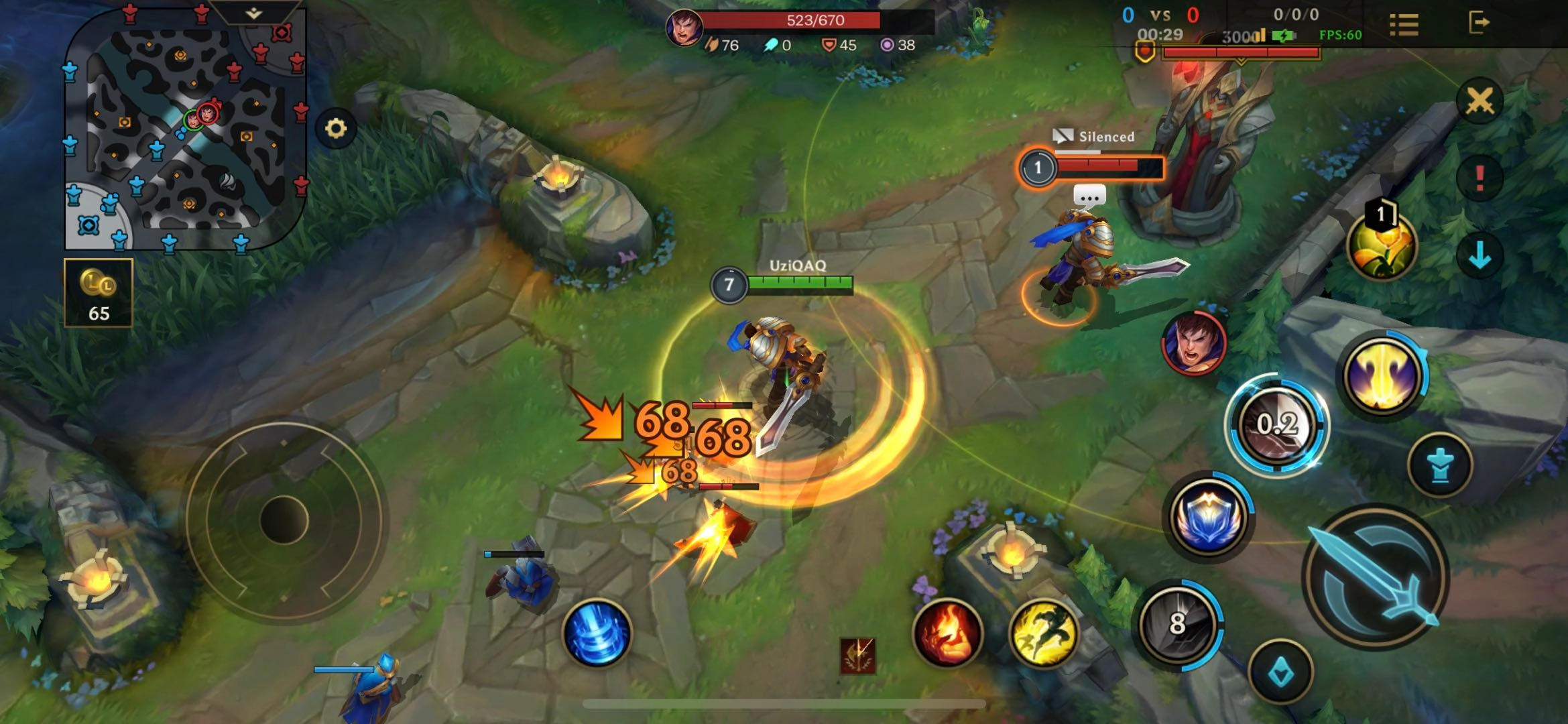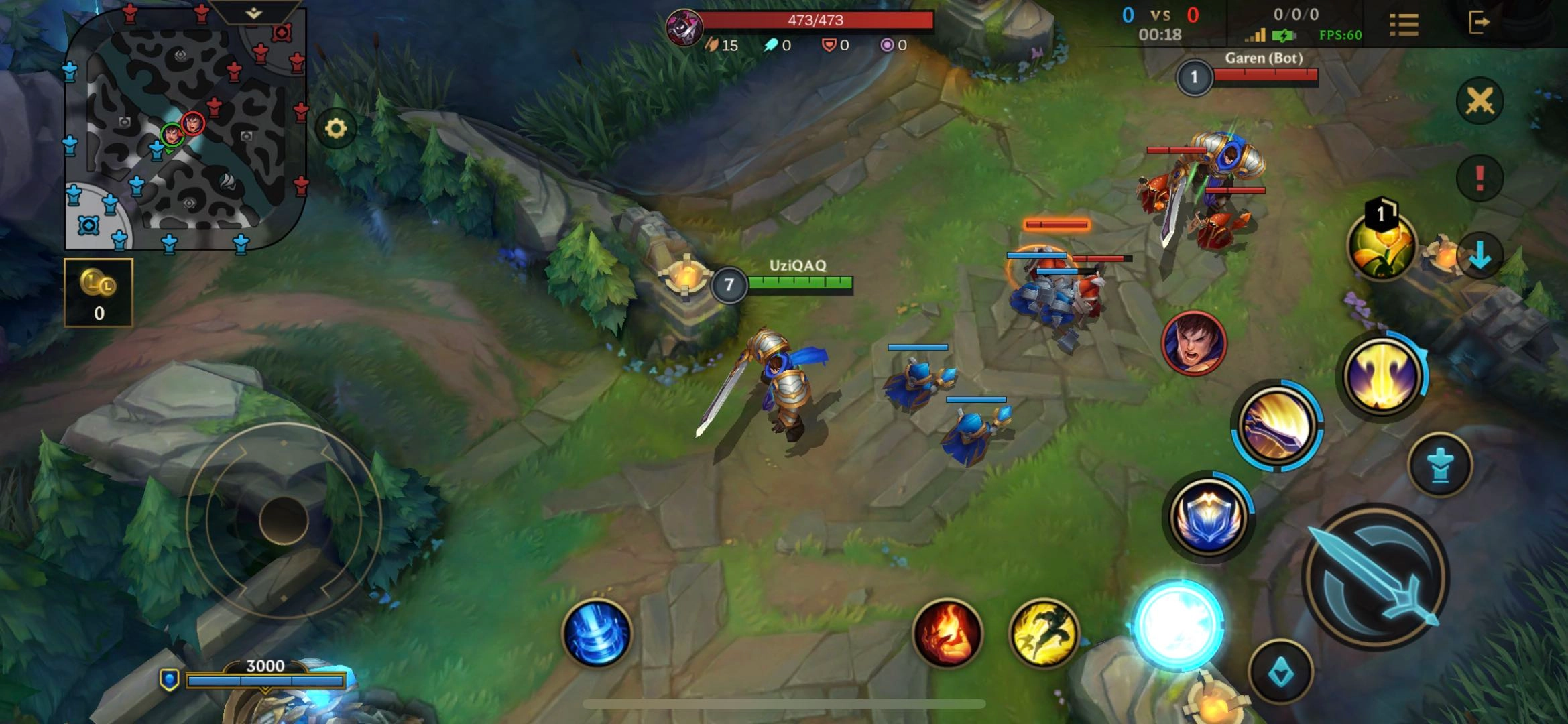 盖伦玩上单时必须掌握补兵技巧,补兵是英雄联盟手游的特色机制之一。当英雄对小兵完成最后一击时,就能拿到额外的赏金。就像前期的近战兵,要是被己方小兵打死,盖伦就算站在旁边也只能拿到二十二个金币,但要是由盖伦完成击杀,就能获得六十多金币,两者的差距相当明显。