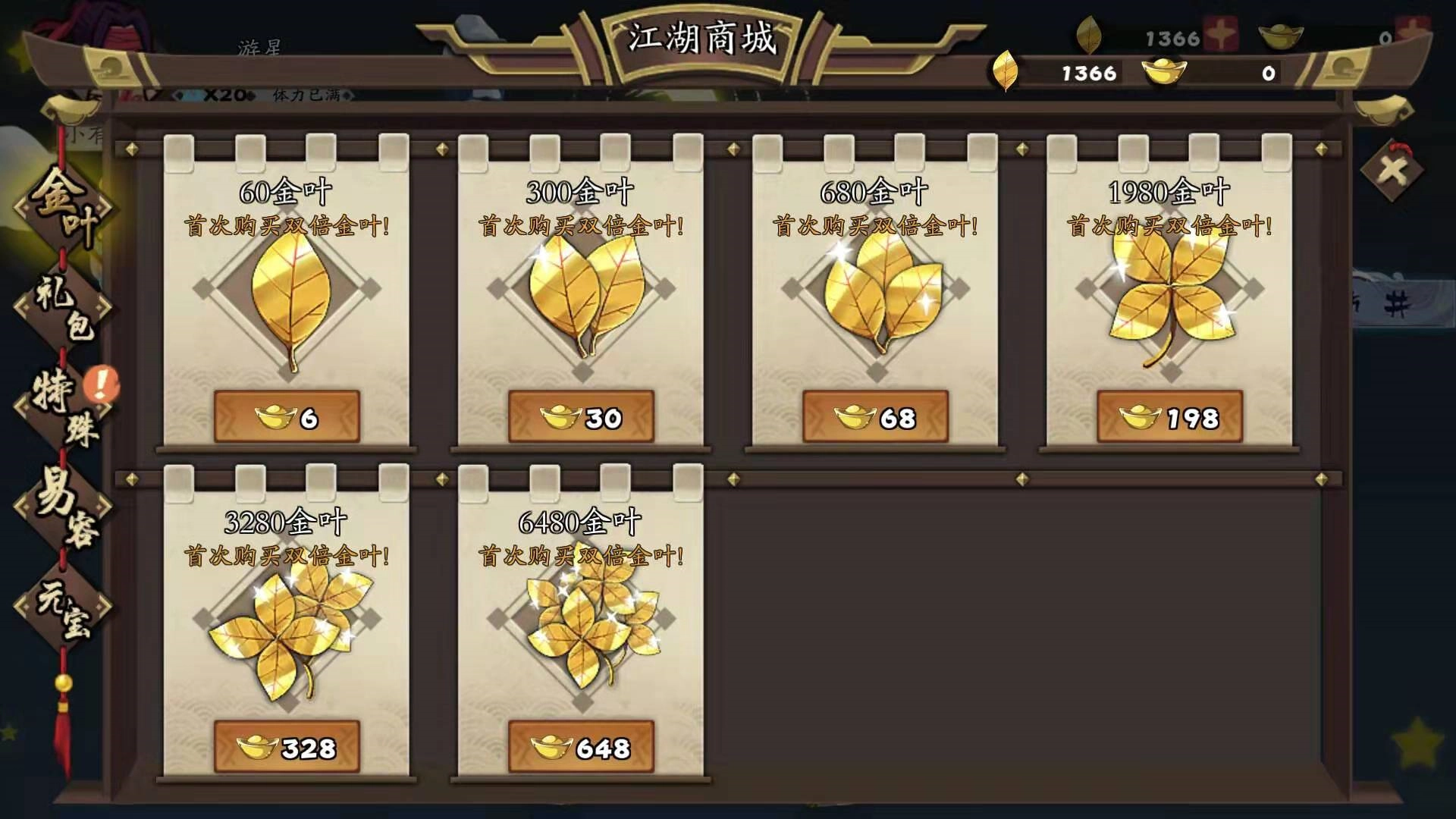 对于多数玩家而言,拿到魔教教主的主要难点或许在于金叶子的获取。最直接的办法是充值,人民币和金叶子的兑换比例为1:10,原本竹林英雄传需要花费98元人民币才能得到,但由于有首充优惠,实际上玩家仅需64元就能获取。