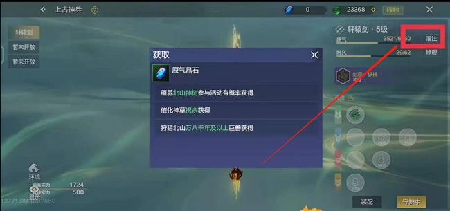 4、接着往轩辕剑中注入原气,直至注满。
