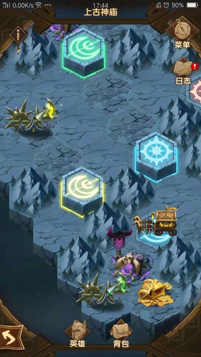 重难点整理:这个图和前面的相比,没有那么多繁杂的限制,核心特色在于陷阱的设计。陷阱带有明确针对性,分为智力型(对应问号标识)、敏捷型(对应弓箭标识)和力量型(对应宝剑标识)——踩中一次,所有匹配该属性的英雄都会掉半血。需要注意的是,前两次陷阱是必须踩的:第一次针对智力型,第二次针对敏捷型。如果队伍以这两种属性的英雄为主,就得格外小心;不过我建议可以一次性把这两个陷阱都踩完,因为中间有个温泉能一次性回满状态。通常踩完这两个陷阱后,后续难度不会太大,按顺序推进即可。另外这个图还有隐蔽通道,解锁条件是同时获得3个光碑的祝福,并且需要击败15号BOSS。地图概况:全图共21关,设有1个佣兵营地,但没有复活点,不过分布着3个温泉。敌人阵容以亡灵和蛮血种族为主,绿裔大多是杂兵。阵容建议:综合全图情况,推荐使用耀光与绿裔搭配的阵容挑战最佳。其中绿裔英雄进图后能免费获得两个,问题不大——一个在佣兵营地,另一个是卡兹。建议去6号区域前,先到15号位置转一圈就能拿到卡兹;虽然要踩一个陷阱,但选阵容里最不重要的属性对应的陷阱就行,比如我的队伍里本来就没什么敏捷型英雄,而且卡兹既能前排抗伤又有输出,性价比很高。绿裔这边有塔西的控制很完美,耀光主要负责输出,女祭司、龙弓、瑟恩、送葬者都可以选,带个光盾防御效果最好。佣兵营地的选择上,建议在有回复英雄的基础上,选一个能抗的放前排:希瑞斯就不错,还带有群体击杀特效;小羊虽然能加血但比较脆,不太推荐。四、上古神庙