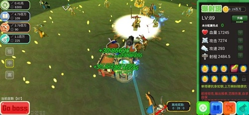 半藏塔的攻击范围相当大,攻速也不慢,然而攻击力较弱。要是玩家坚持提升攻击力,效果并不明显,建议优先升级攻速和范围,达成全屏打击效果来消灭敌人,这在清理小怪方面十分实用,不妨一试。