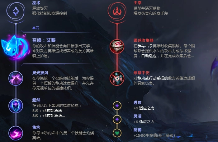 第二种是艾黎玩法,虽然不算主流,但在线上压制力同样出色。海兽祭司的Q技能本身伤害就很高,搭配艾黎能额外增加不少伤害;而且艾黎还能配合E技能实现无伤消耗,即便到了团战,只要大招释放得当,艾黎也能打出可观的附加伤害,所以不必担心这个天赋只能用于对线、不适合团战。
