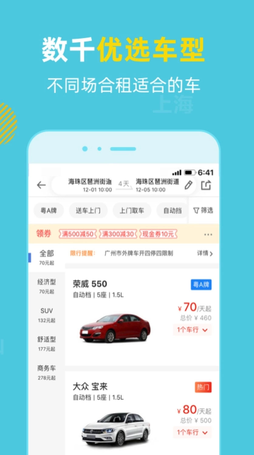 租租车的国内租车服务价格公道实惠,在多个城市均设有门店,致力于重新定义国内租车体验,为用户提供优质服务。新用户更能享受专属优惠,助力各位小伙伴开启美好的自驾游之旅。