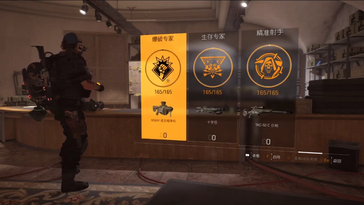 接下来为大家介绍三种专长,分别是爆破专家、精准射手与生存专家。这些均属于被动技能,一旦习得,便能使用特殊武器,而且不同技能所对应的武器各不相同,上述三种技能对应的武器依次为榴弹枪、TAC - 50C步枪和十字弓。