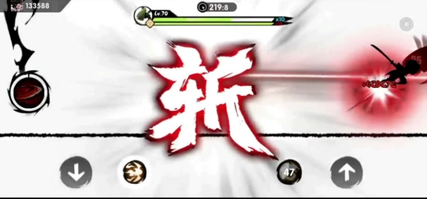 大招名为忍术·千夜绯羽斩,第一段是全屏扫荡式攻击,第二段为三段连续攻击,第三段则是全屏范围的攻击,此时屏幕上会浮现出一个醒目的“斩”字。整个三段攻击过程总计3.5秒,在这段时间内,绯斩苍牙始终处于无敌状态,堪称简单直接且威力强劲。