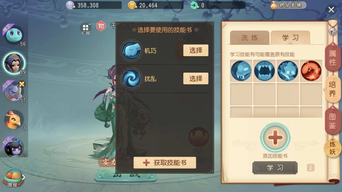 要得到满5技能的宝宝,只能靠洗练或者炼妖这两种方式。毕竟打书最多只能让我们获得3技能的宝宝。宝宝的基础技能数量是判断其优劣的关键。等我们有了五技能宝宝,就能通过打书来调整它的技能属性了。要是想让宝宝学会高级技能,就得准备好高级技能书,这种书可以用金币在摆摊处购买,也能通过挖高级藏宝图得到。
