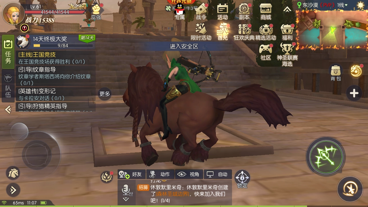 首先大家要找到各个地图的传送员,比如神圣天堂的传送员位于地图最下方标有传送门标识的区域,通过自动导航就能到达;和传送员对话后选择目的地,此时直接选东沙漠即可。抵达东沙漠后需要注意:这里并非所有区域都能进行玩家PK——中心小圈属于安全区,圈内无法攻击其他玩家,只有离开这个圈子才能开启PK;若在圈外死亡,会自动复活到最近的复活点。
