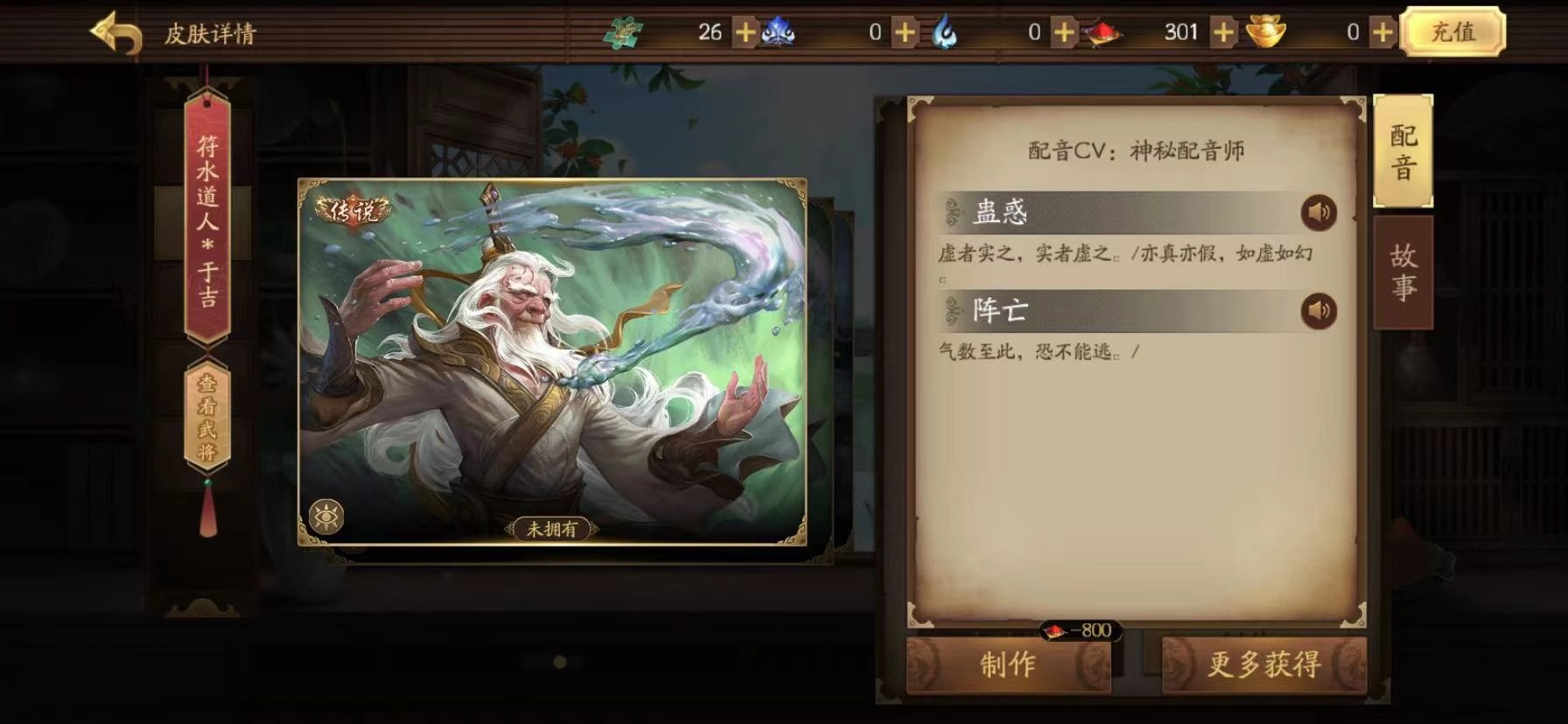 于吉出场率不高,很大程度上和他自身的操作难度有关——他是游戏里为数不多的高难度卡牌,但这其实是因为大家对他不够了解。一旦熟悉了他的机制,就会发现于吉并没有想象中那么难上手。于吉只有一个名为“蛊惑”的技能:每名角色的回合内限用一次,玩家可以扣置一张手牌,将其当作任意基本牌或非延时类锦囊牌来使用或打出。此时若有其他玩家提出质疑,就需要翻开这张扣置的牌验证:如果牌面与声明不符(即“假”),这张牌的效果作废;如果相符(即“真”),质疑的角色会获得一个名为“缠怨”的锁定技——该技能生效后,玩家无法再质疑蛊惑,而且当自身体力值为1时,其他所有技能都会失效。